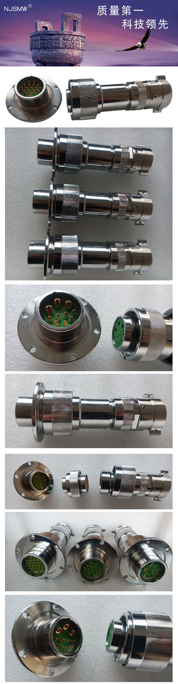 | 項(xiàng)目10芯16芯26芯 額定電流≥20A≥20A≥25 工作電壓250V(AC)耐電壓2000V(AC)工作溫度-40℃~105℃相對(duì)濕度90%~95%(40℃±2℃時(shí))鹽 霧5%NaCl霧氣中96h密封性頭座配合0.5m水深0.5h不滲水(防雨淋)振 動(dòng)10~2000Hz,147m/s2,瞬斷≤1us沖 擊加速度峰值490m/s2,瞬斷≤1us抗拉力≥500N機(jī)械壽命≥500次絕緣電阻常態(tài)下≥2000MΩ材料接觸件銅合金鍍金基體硬度維氏(HV)≥170(布氏(HB)≥160)接觸電阻≤2mΩ≤2mΩ≤2mΩ 鎖定方式卡口鎖定螺紋鎖定卡口鎖定 |