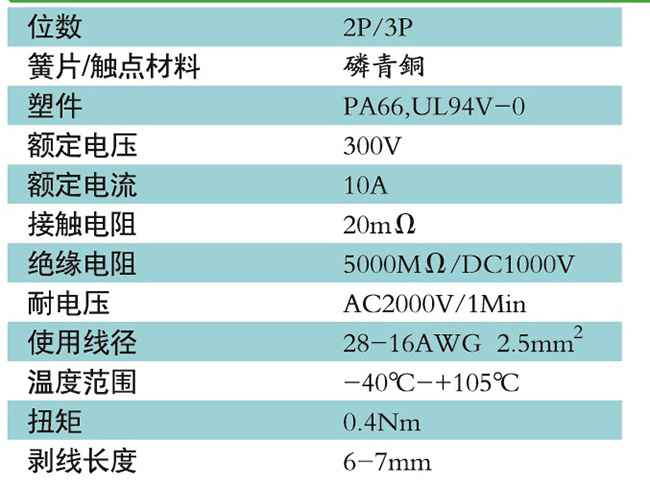 接線端子的絕緣材料用改性的尼龍(PA66),能達(dá)到或超過(guò)IEC947-7-1EN60947-7-1標(biāo)準(zhǔn),阻燃等級(jí)達(dá)到UL94,V-0具有良好的電氣性能和機(jī)械性能。螺絲用高強(qiáng)度的鋼制成鍍鋅或鎳處理,導(dǎo)電體四方針用合金銅制成表面鍍錫,壓片采用彈性及極強(qiáng)的磷青銅表面鍍錫或鎳;壓線框用抗應(yīng)力裂縫腐蝕的合金銅制成,這些金屬表面還鍍錫或鍍鎳加以保護(hù)。設(shè)計(jì)完全符合IEC60947-7-1.GB14048.7等標(biāo)準(zhǔn)。